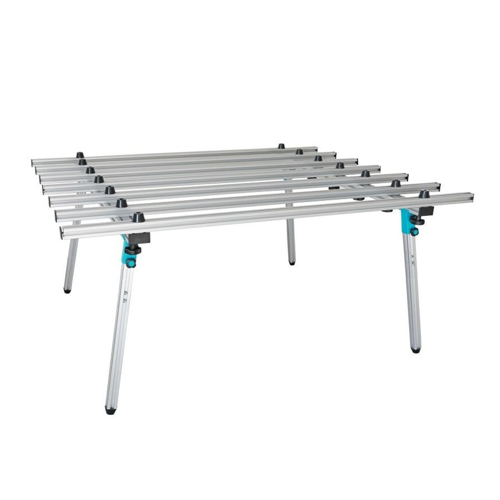 Robust och stabilt arbetsbord för storformatiga plattor. Tillverkad av aluminium. Längsgående skåror för kapning. Monteras enkelt isär vid transport och förvaring. Kan monteras ihop med ytterligare bänk för ökad arbetsyta.