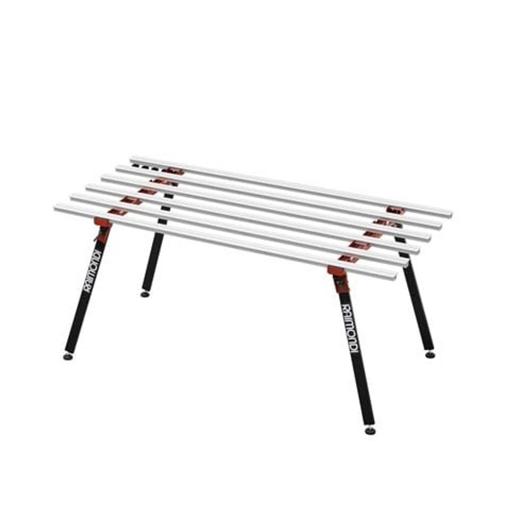 Praktiskt och mycket stabilt arbetsbord för beabetning av stora plattor och skivmaterial.