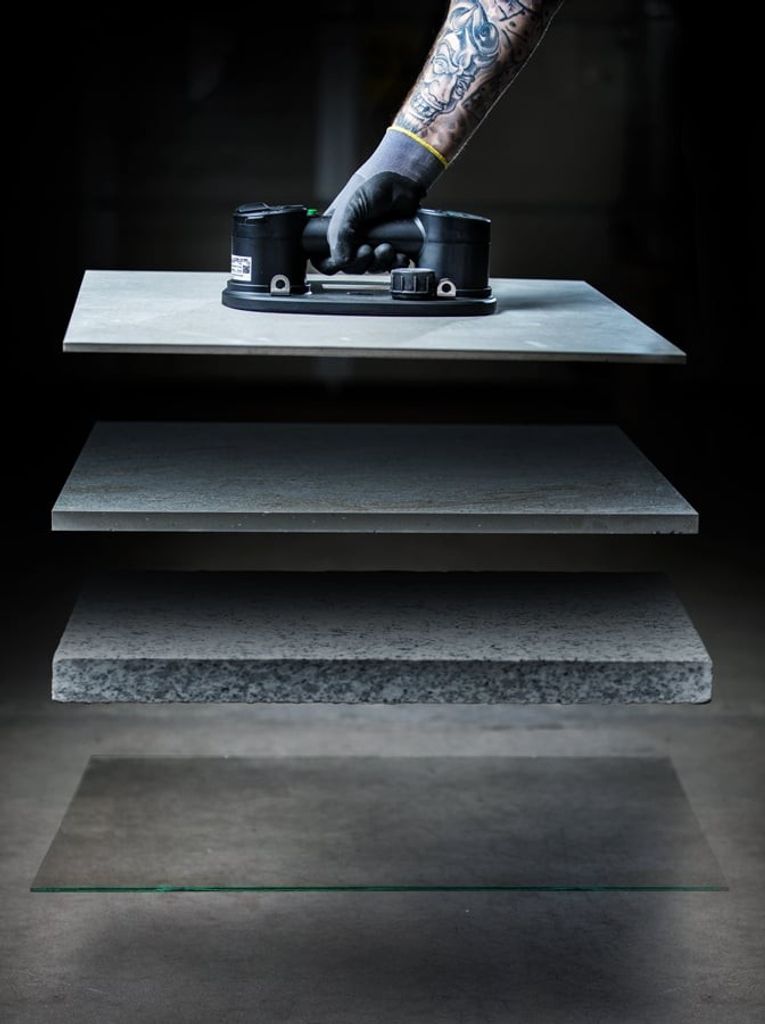 Klarar många olika typer material som t.ex. kakel, klinker, granitkeramik, natursten, marksten och glas.
