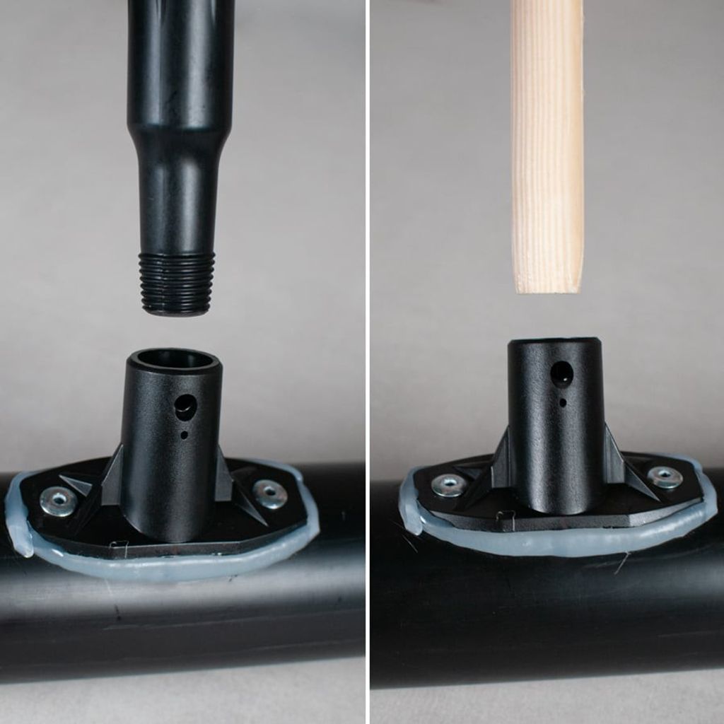 Rörformad betongsloda av polypropen. Skaftfäste med bortsgänga. Passar skaft med borstgänga alternativt träskaft konat till Ø 22 mm.