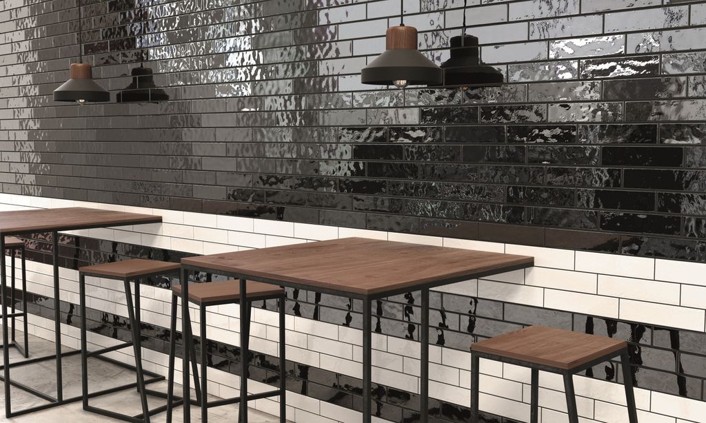 Kakel 6,5x26,5 cm med metallglans och bred färgskala. Beställningsvara, 2–3 veckors leveranstid. Ej för dusch eller vattenrika områden.