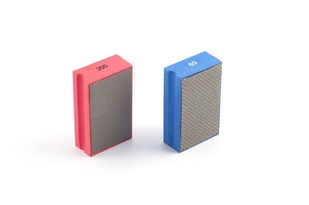 Diamantslipkloss 2st Fin / Med är ett praktiskt set med två slipklossar av diamant för våt- och torrslipning. Klossarna används för att avgrada kanter, bryta hörn och bearbeta mindre ytor på hårda material som granit, marmor, keramik, glas och glasfiber.