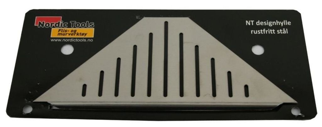 Elegant duschhylla som enkelt monteras i fogen mellan väggplattorna. Monteras enklast innan fogning men kan monteras i efterhand om fogen kratsas ur. Fäst med silikon.