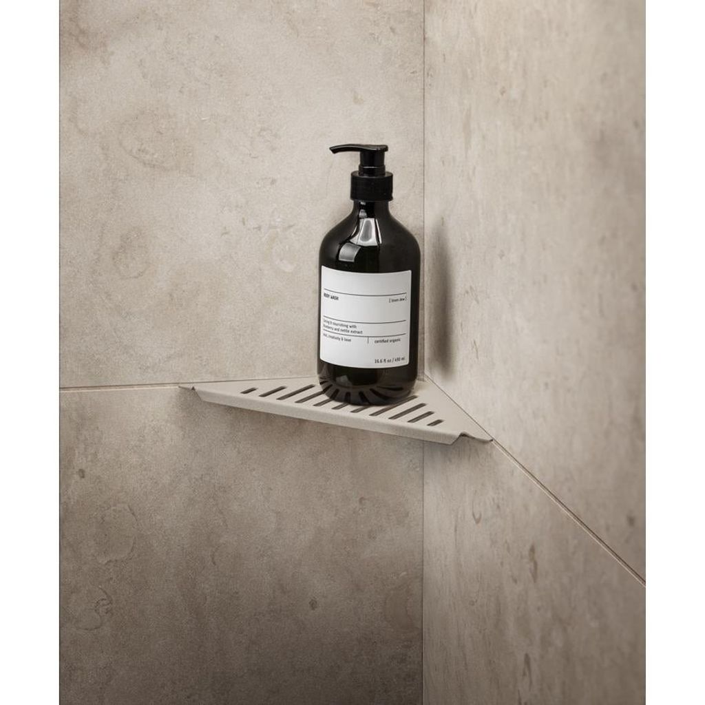 Stilren pulverlackerad duschhylla med STONE-finish i färgen Sandsten