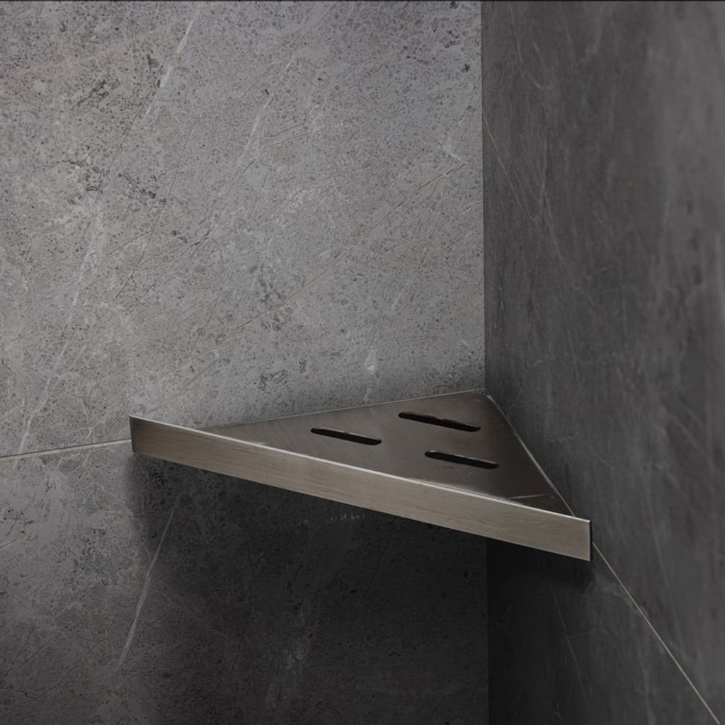 Duschhylla Tile in Air Borstad är en stilren och funktionell duschhylla som kan integreras med keramiska plattor för en diskret och enhetlig finish i badrummet. Hyllan är tillverkad av borstat rostfritt stål typ AISI 304 med en godstjocklek på 1,2 mm. Den monteras enkelt i hörn med 90° vinkel och fästs i fogar med silikon. Observera att hyllan inte är syrafast.