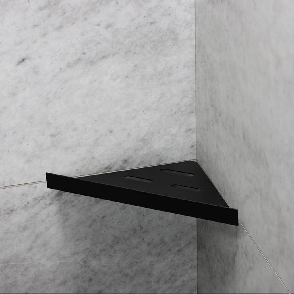 Duschhylla Tile in Air Matt Svart är en stilren och funktionell duschhylla som monteras i 90° hörn med keramiska plattor integrerade i hyllan. Hyllan fästs enkelt i fog med silikon för en elegant och osynlig installation.