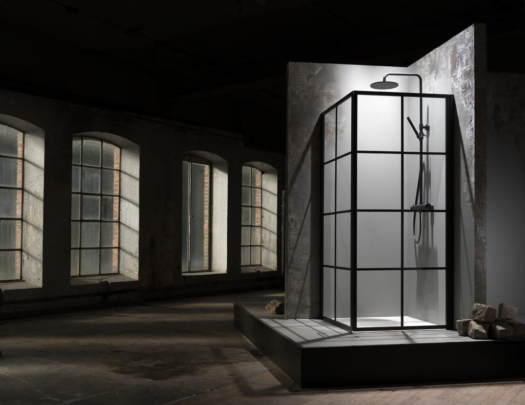 Empire är med sina mattsvarta aluminiumprofiler runt hela glaset och 6 mm härdat klarglas en robust dusch med industriell design.