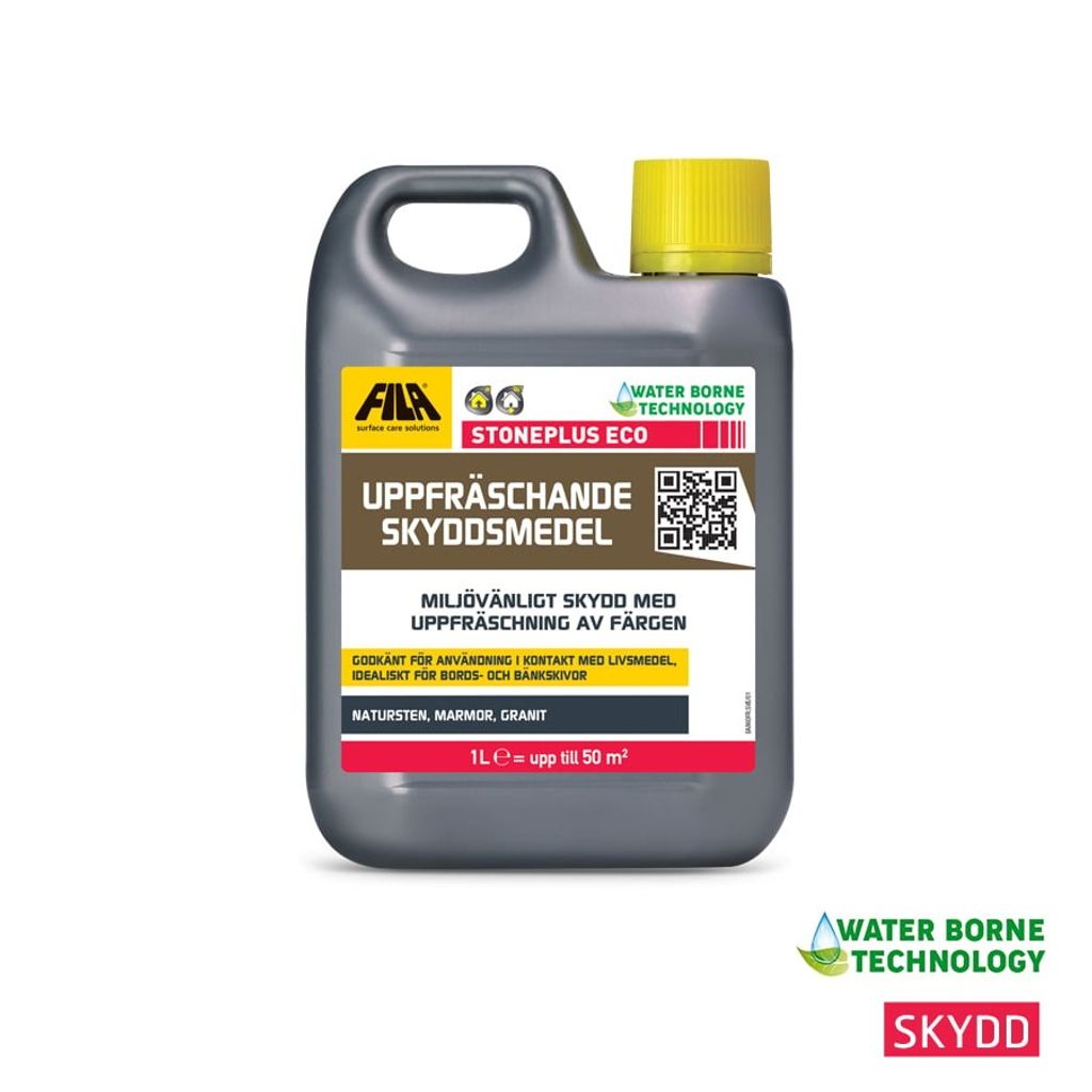 Fila StonePlus Eco är en fläckskyddande impregnering för t.ex. natursten, marmor och granit, som lyfter och förstärker materialets färger och utseende.