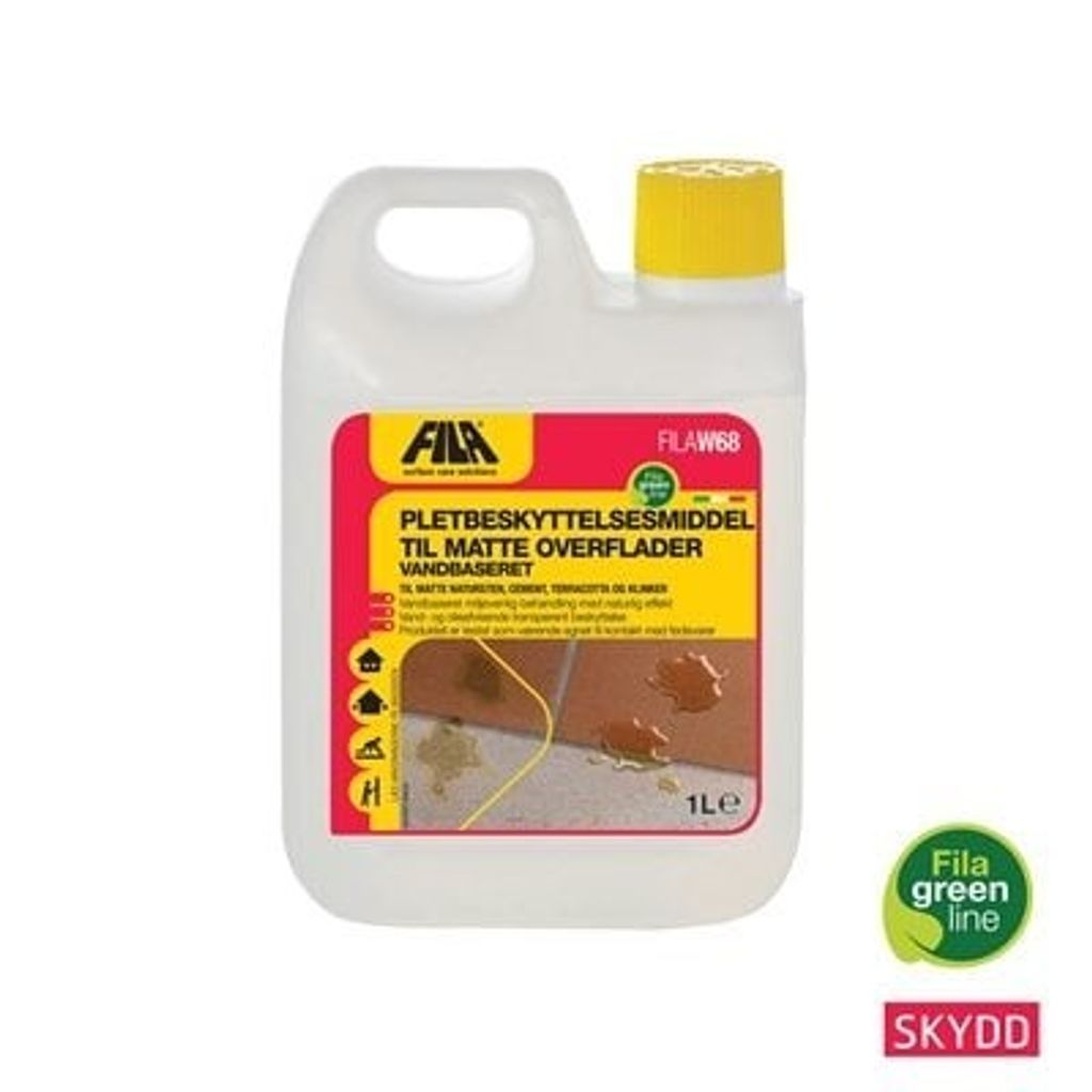 Fila W68 är en vattenbaserad och lösningsmedelsfri impregnering som ger effektivt fläckskydd på opolerade och absorberande ytor. Produkten är särskilt lämplig för Marrakechplattor, terrakotta, cement, natursten och obehandlade betonggolv inomhus.
