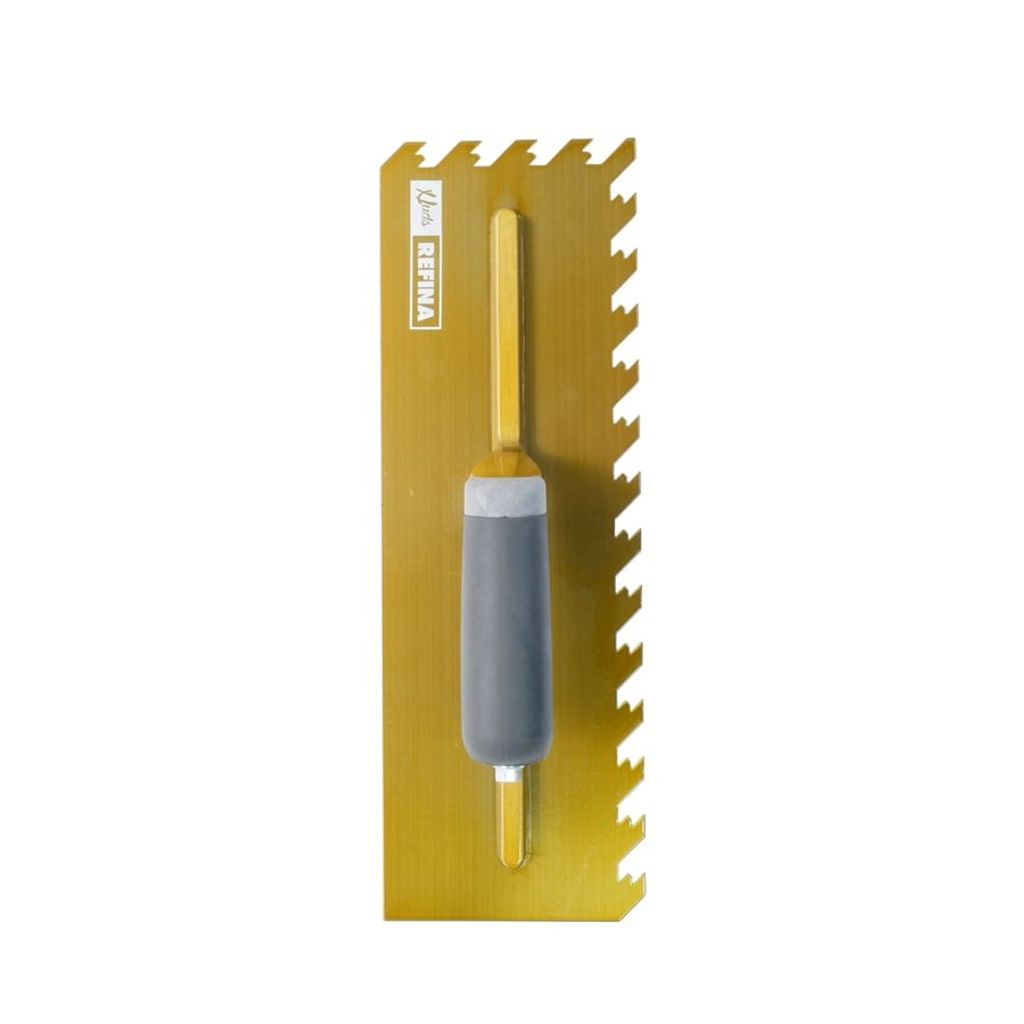 Fixkam Refina 360 mm från HUDS NotchTile™-serien är ett premiumverktyg i 0,7 mm rostfritt stål, designat för proffs. Den laserskurna H45-tandningen är optimerad för att rillorna ska kollapsa vid mindre tryck, vilket minskar luftfickor och ger maximal täckning av ytan. Kammen har tandning på både lång- och kortsida och ett bekvämt softgrip-handtag. Bladets högkvalitativa beläggning gör rengöring enkel och förlänger verktygets livslängd. Val av tandningsstorlek bör anpassas efter plattornas storlek.