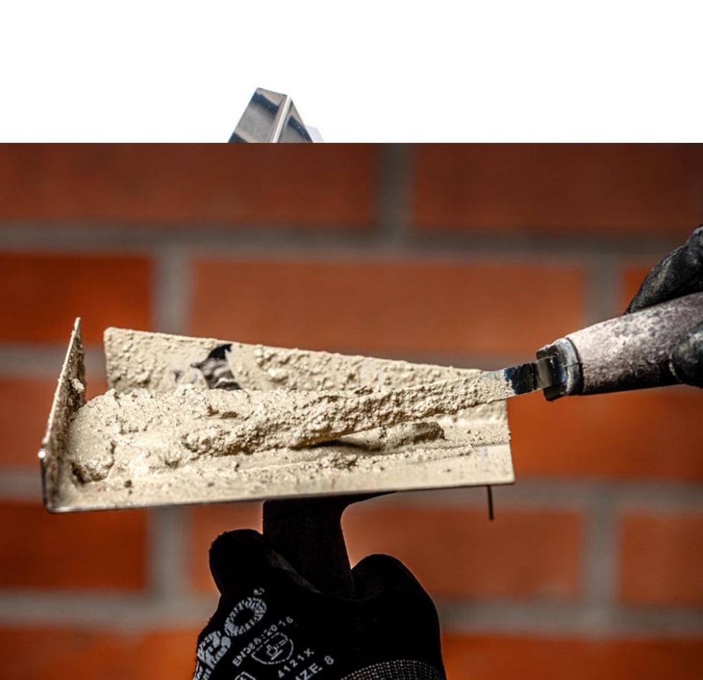 Fogbricka med läderhandtag och blad av rostfritt stål med rundade hörn. Används för att hålla och fördela murbruk till fogen vid murning. Minskar spill på fasaden.