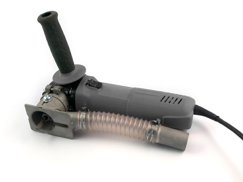 Fogfräsutsug för vinkelslip. Kopplas till dammsugare för att minimera sten och dammspridning.