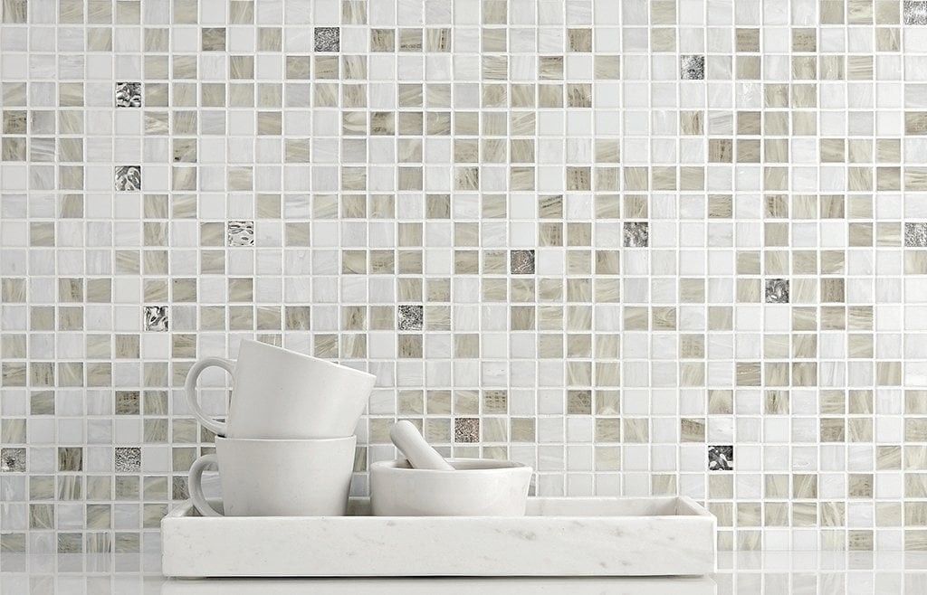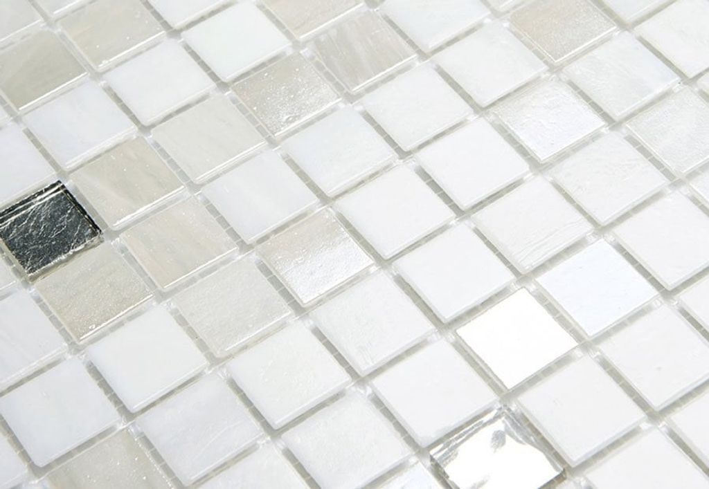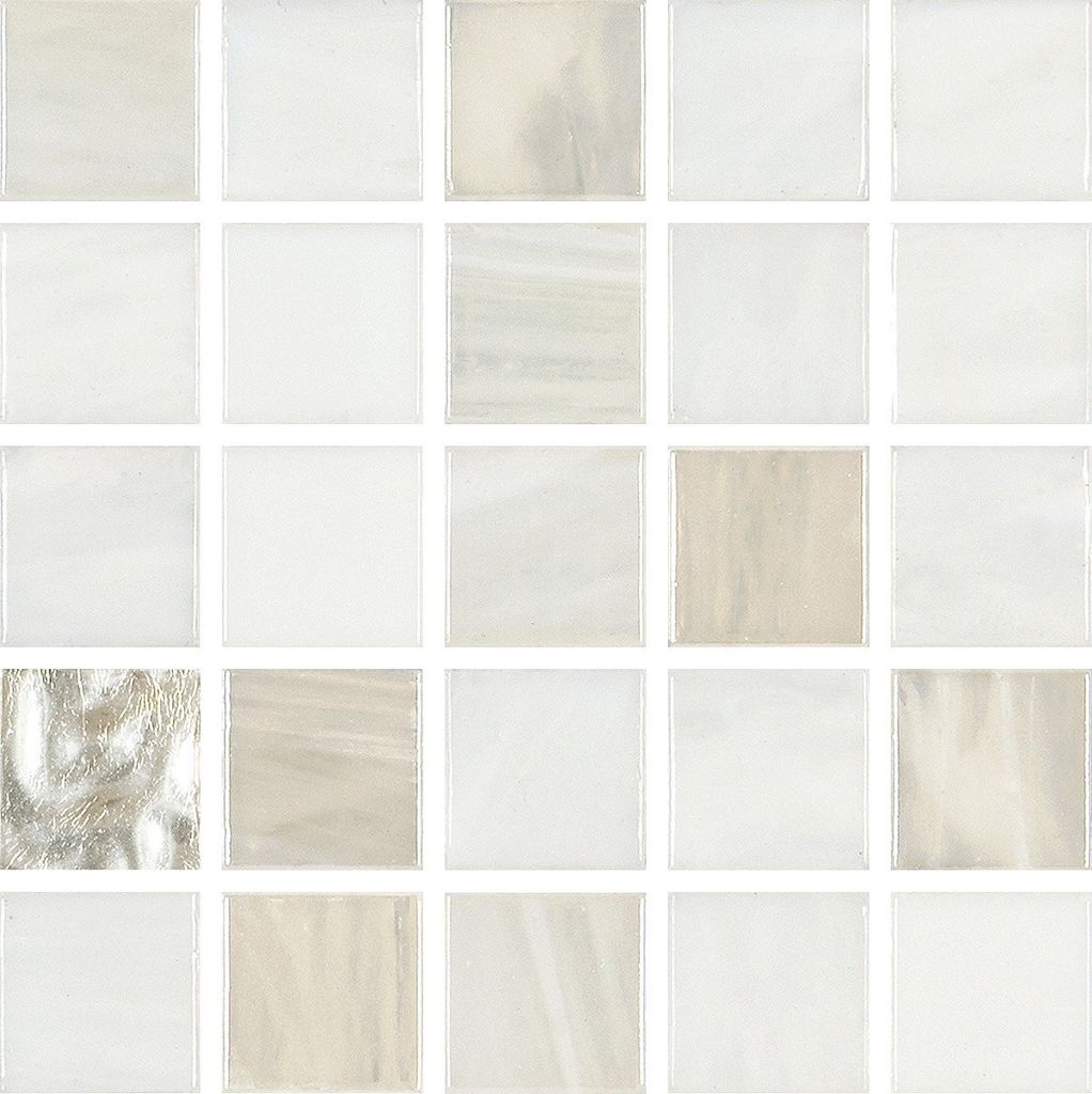 Glasmosaik 2x2cm, Mix av vit + vita guldbitar