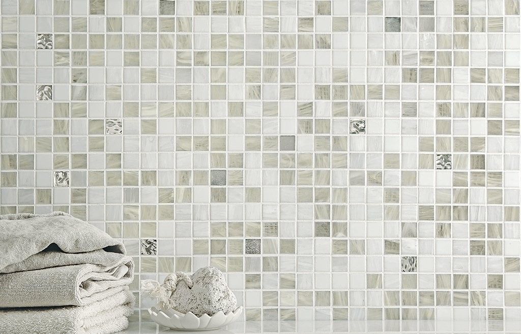 Fogens färg påverkar slutresultatet lika mycket som valet av mosaiken. För att uppnå ett homogent uttryck rekommenderar vi en fog som är matchad till mosaikens färg. En starkt kontrasterande fog tar större uppmärksamhet och ger ett skarpare fogmönster men kan samtidigt vara mycket effektfullt. Vi rekommenderar Ultracolor Plus från Mapei. Den är finkornig och fyller ut mycket bra, med en god vidhäftning till glaset.