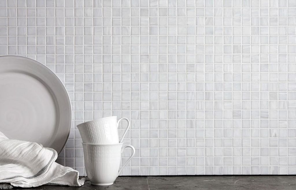 Beskrivning av Glasmosaik 2x2cm vit melerad
