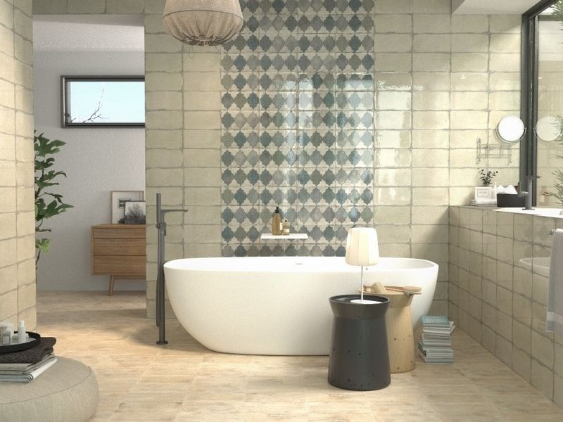 Modern blank kakelserie med betongkänsla i härliga färger. Finns även med matchande dekorplatta. Passar bra till väggar i badrum eller kök.