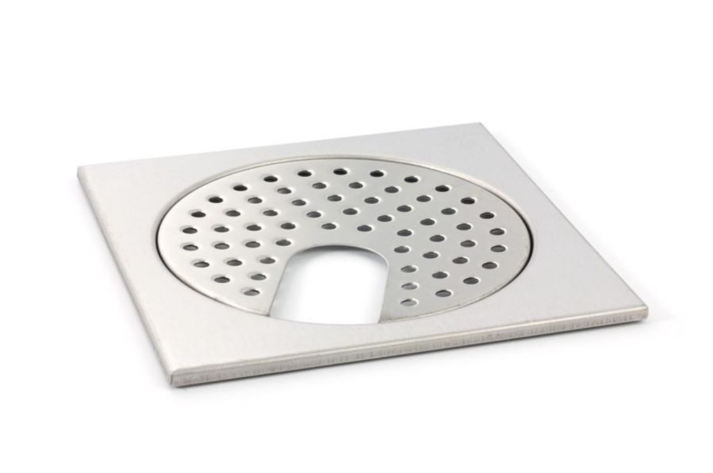 Golvbrunnssil av rostfritt stål typ AISI 430. 200 x 200 mm.