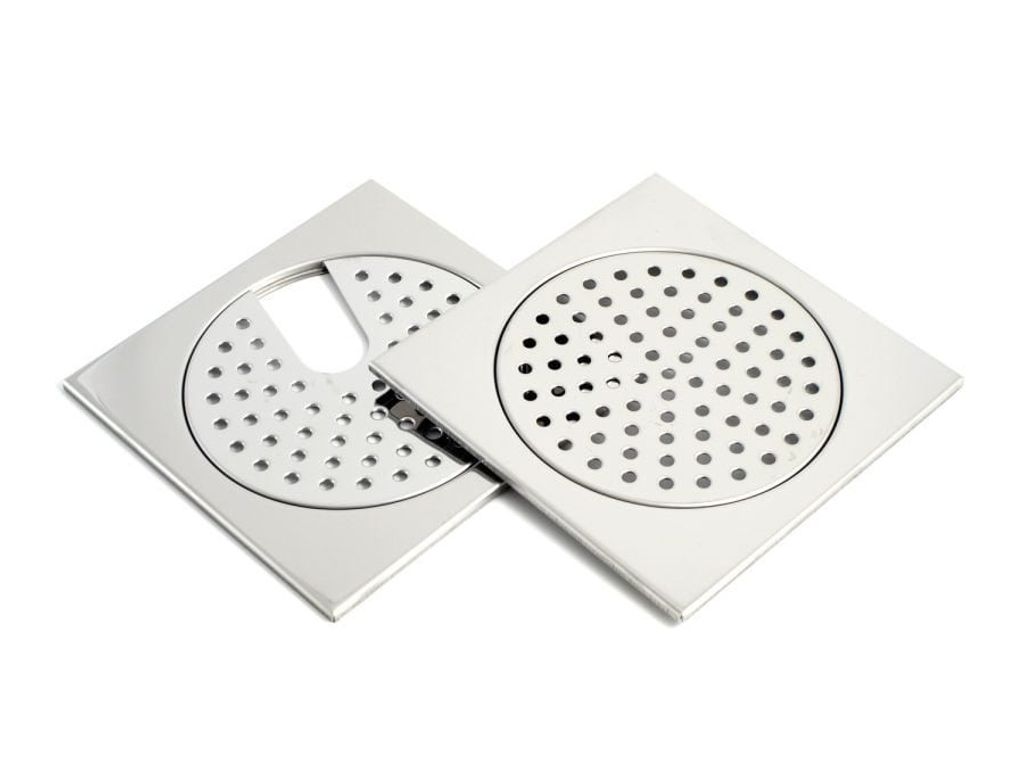 Beskrivning av Golvbrunnsil 200mm mosaik m/u Golvbrunnssil av rostfritt stål typ AISI 430. 200 x 200 mm. Godstjocklek 1 mm. Ej syrafast.