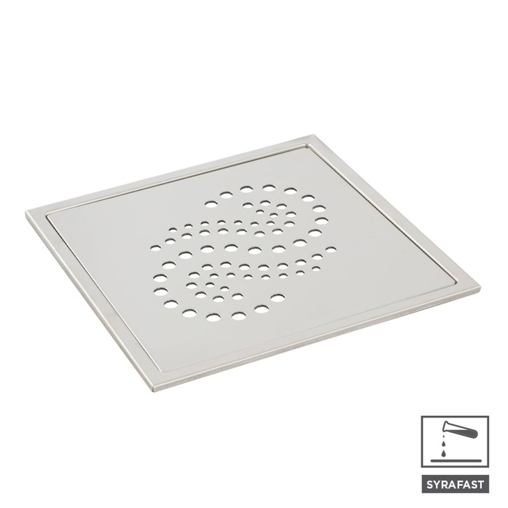 Elegant golvbrunnssil av borstat rostfritt stål typ AISI 316. Godstjocklek ram: 1 mm. Godstjocklek sil: 2 mm. Syrafast. Rekommenderad i miljöer med högre krav där t.ex. klorider och salt förekommer.