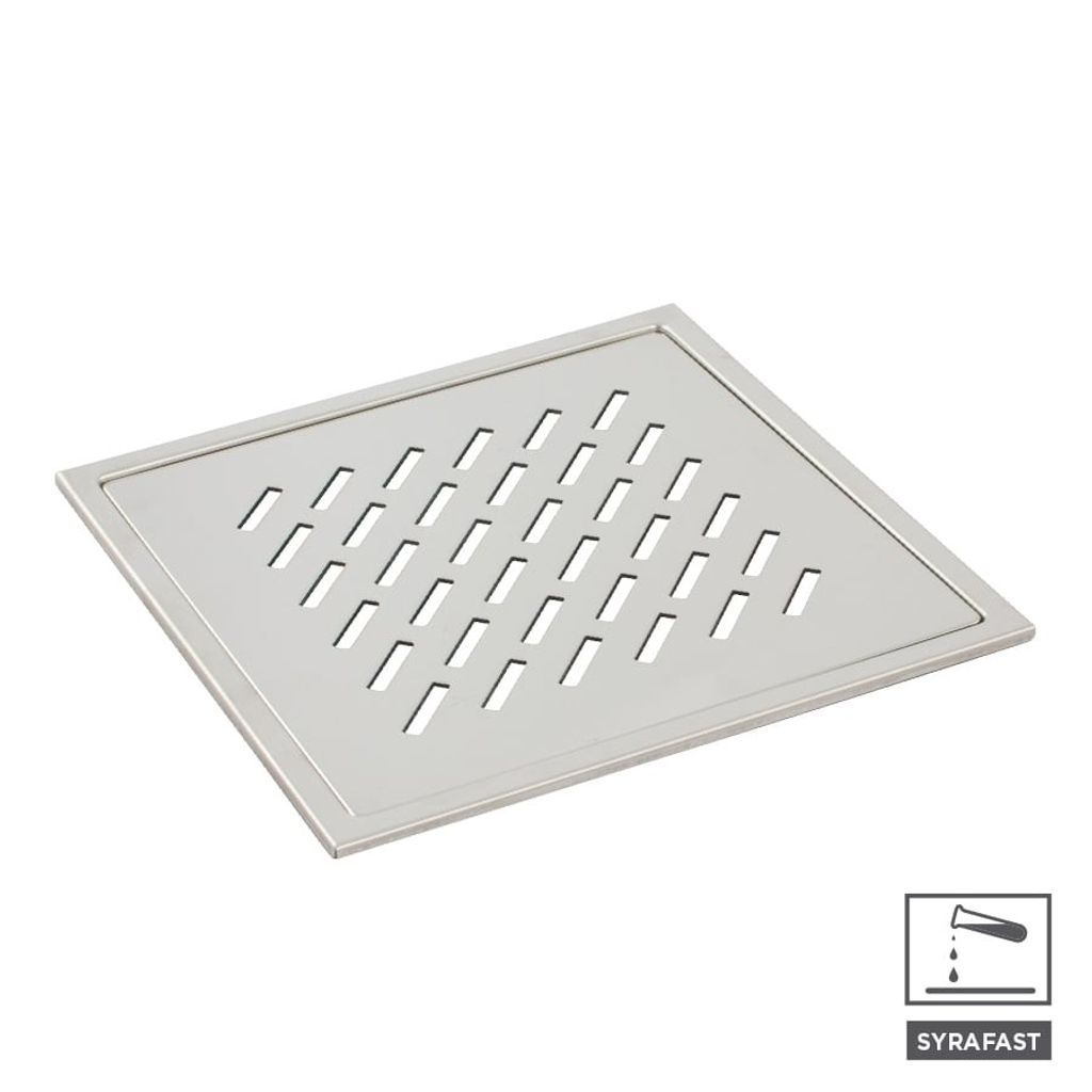 Elegant golvbrunnssil av borstat rostfritt stål typ AISI 316. Godstjocklek ram: 1 mm. Godstjocklek sil: 2 mm. Syrafast. Rekommenderad i miljöer med högre krav där t.ex. klorider och salt förekommer.