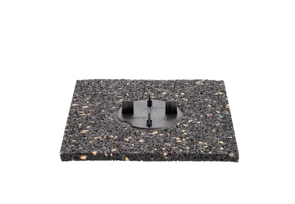 Platta av återvunnet gummi med plats för Distanskryss U-PAD-FLAT. Används istället för piedestal vid låga höjder. Kan kombineras med andra tillbehör för höjder mellan 3-17 mm.
