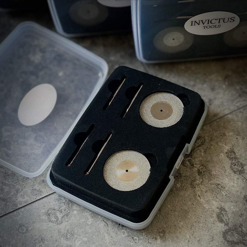 Invictus set med 2 kapskivor 40 mm och 2 diamantbelagda slipstift. Perfekt för kapning och slipning i trånga utrymmen, passar Proxxon multisåg.