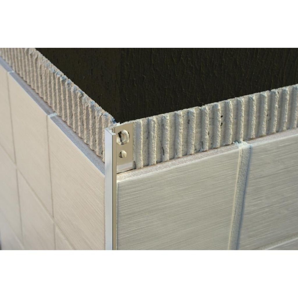 Kakellist i aluminium med L-profil. Kan användas som hörnlist, dekorlist eller avslutningslist.
