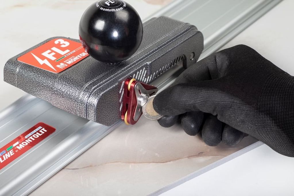 Komplett set för skärning av storformatiga plattor. Skärhuvud av aluminium med 3 st titanbelagda skärtrissor i storlek 8, 12 och 20 mm. 3 st 1200 mm styrskenor som kopplas ihop och ger en total skärlängd på upp till 3400 mm. Styrskenornas undersida har halkskydd för att ligga stadigt mot underlaget. Setet levereras i en praktisk förvaringsväska.