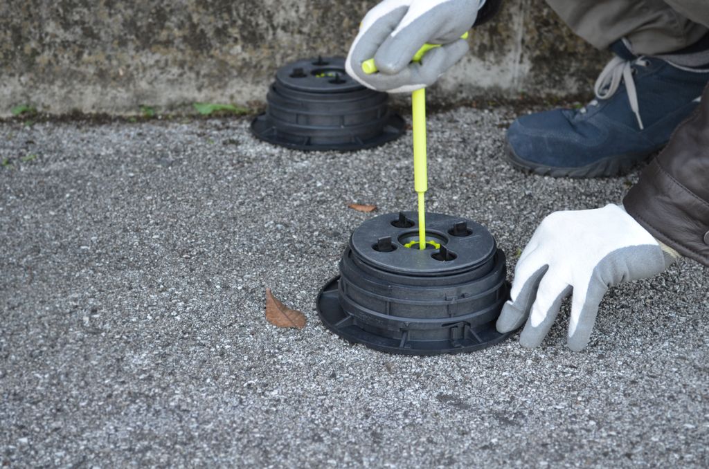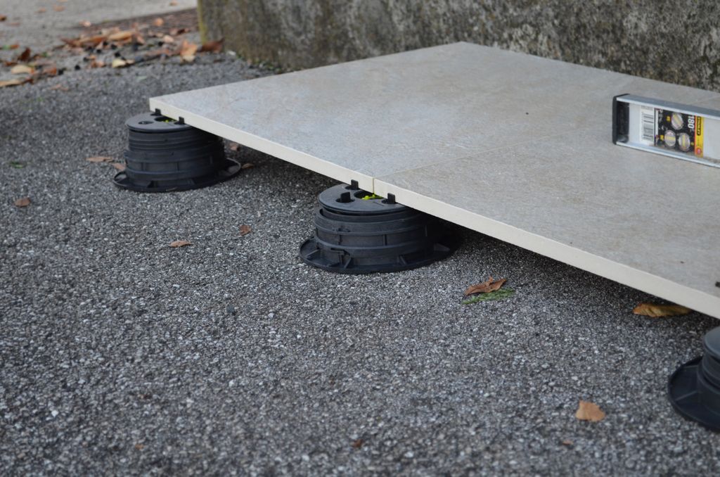 Självnivellerande klinkerstöd för montering av 2CM utomhusklinker. Stöden finns i fler utföranden med olika bygghöjd för att skapa en plan yta på lutande underlag. Lämpliga användningsområden är takterrasser, uteplatser och uteserveringar.