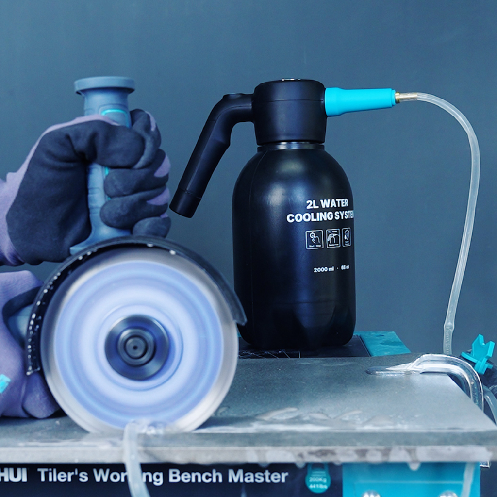 Batteridrivet kylsystem med 2 liters vattentank. Ger en jämn och stabil vattenförsörjning vid bearbetning med vattenkylning. Används för att minska damm vid kapning, håltagning eller slipning och ökar livslängden på diamantverktyget.