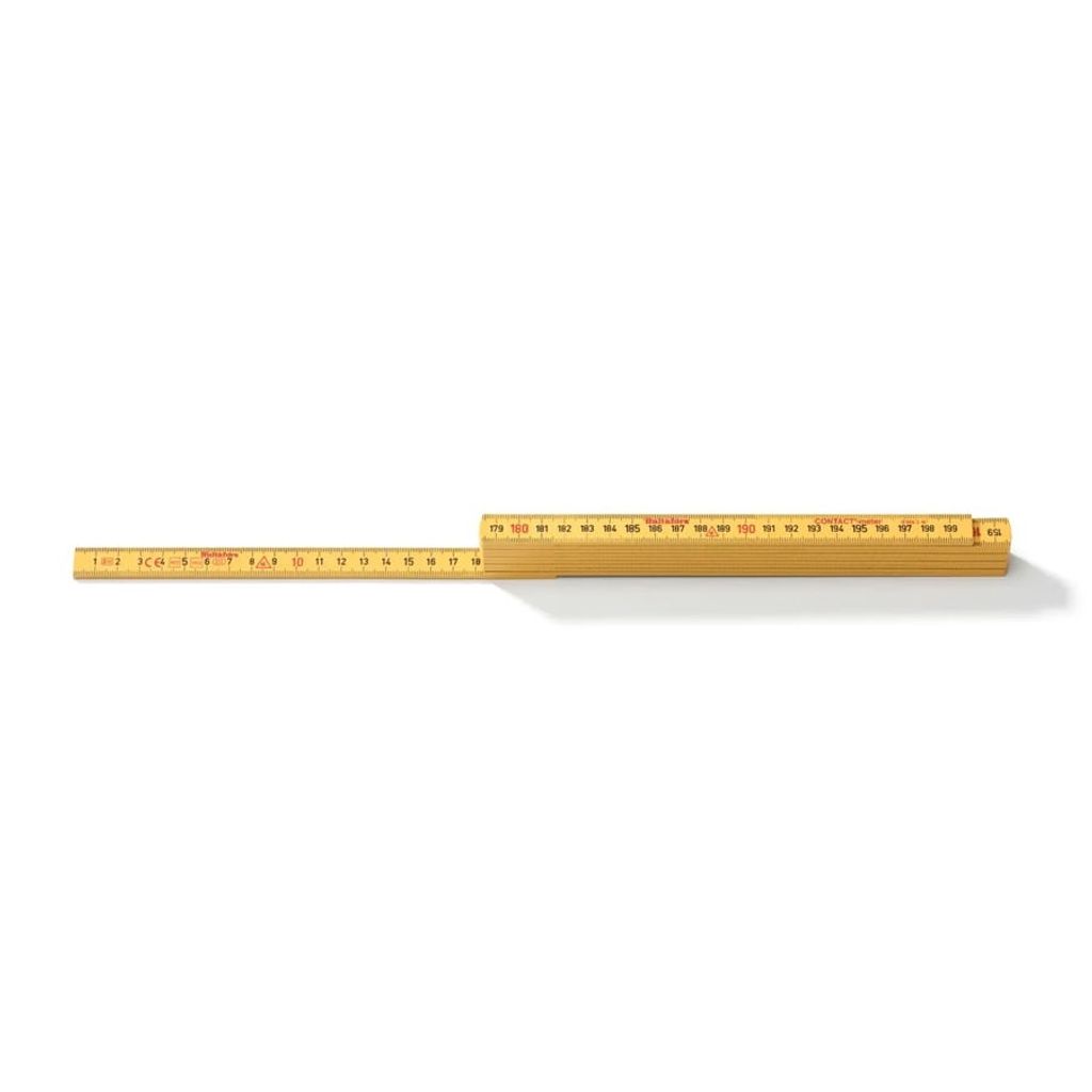 Contactmeter tillverkad av glasfiberförstärkt polyamid. Hög motståndskraft mot fukt. Kan placeras plant mot arbetsytan då skalan sitter på insidan av första stickan. Invändig metrisk gradering med centimeter/millimeter på båda sidor samt röda decimetermarkeringar.