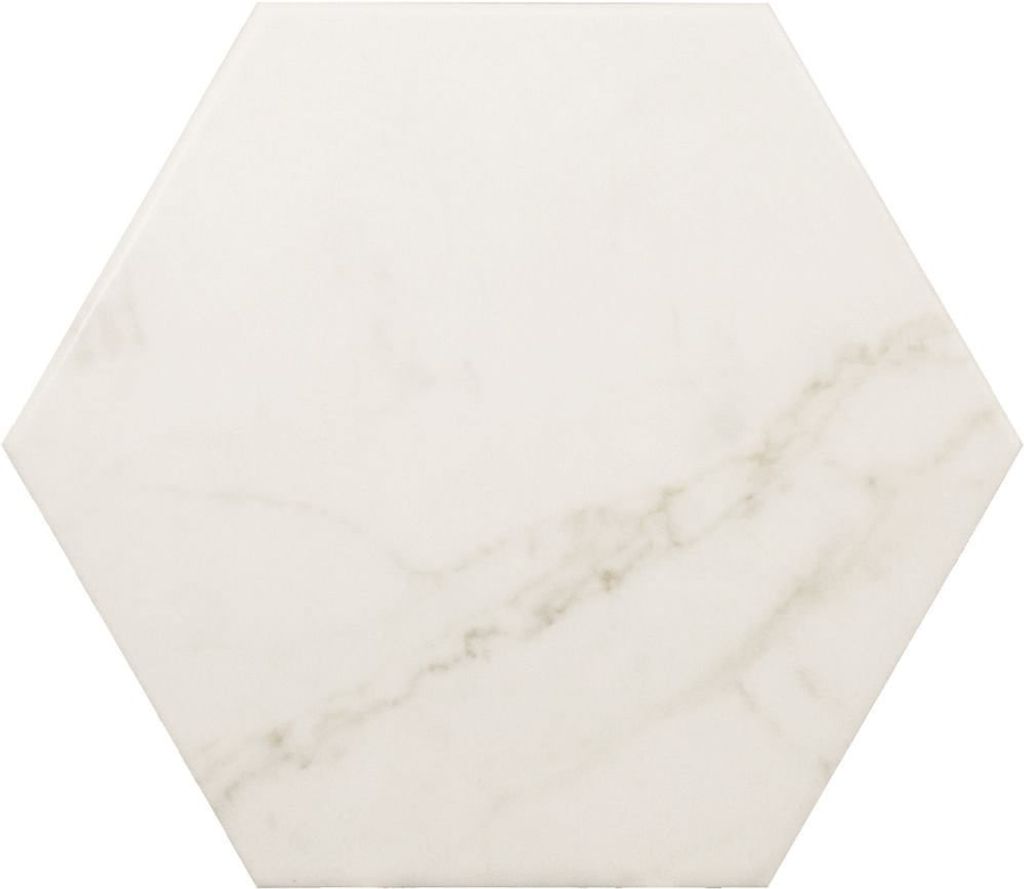 Snygg marmorliknande klinkerplatta i hexagonformat som ger en exklusiv känsla till ditt kök eller badrum.