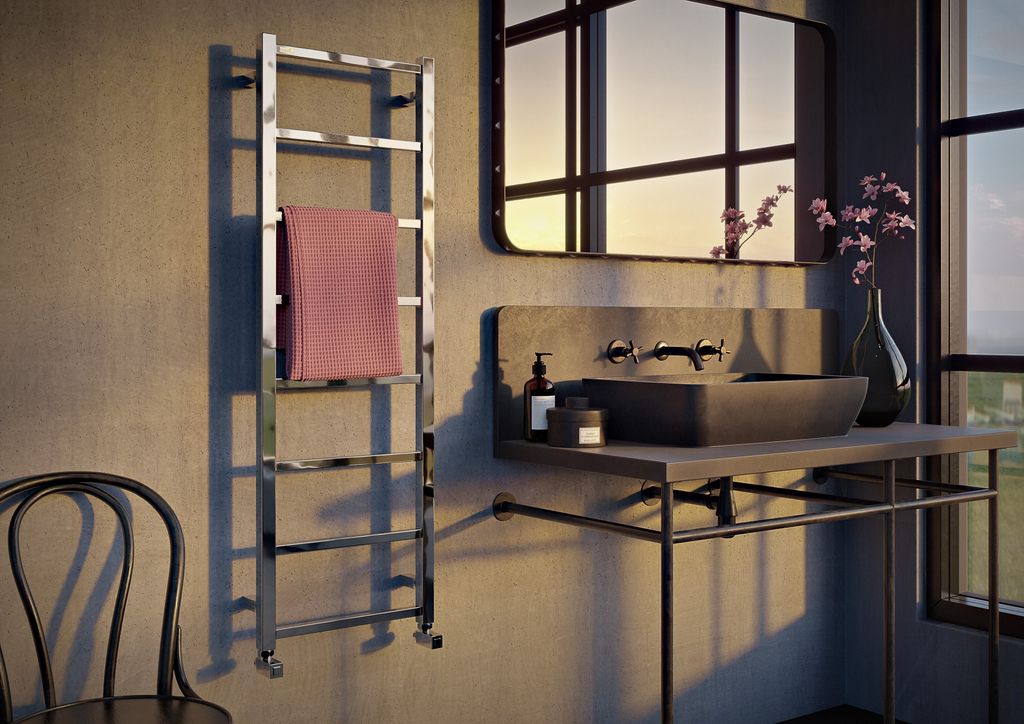 Med ett kvadratiskt designspråk är Örtofta en minimalistisk och modern handdukstork – framtagen för att matcha andra kantiga former i ditt badrum. Resultatet blir ett enhetligt och stilrent badrum med det grafiska uttrycket i centrum.