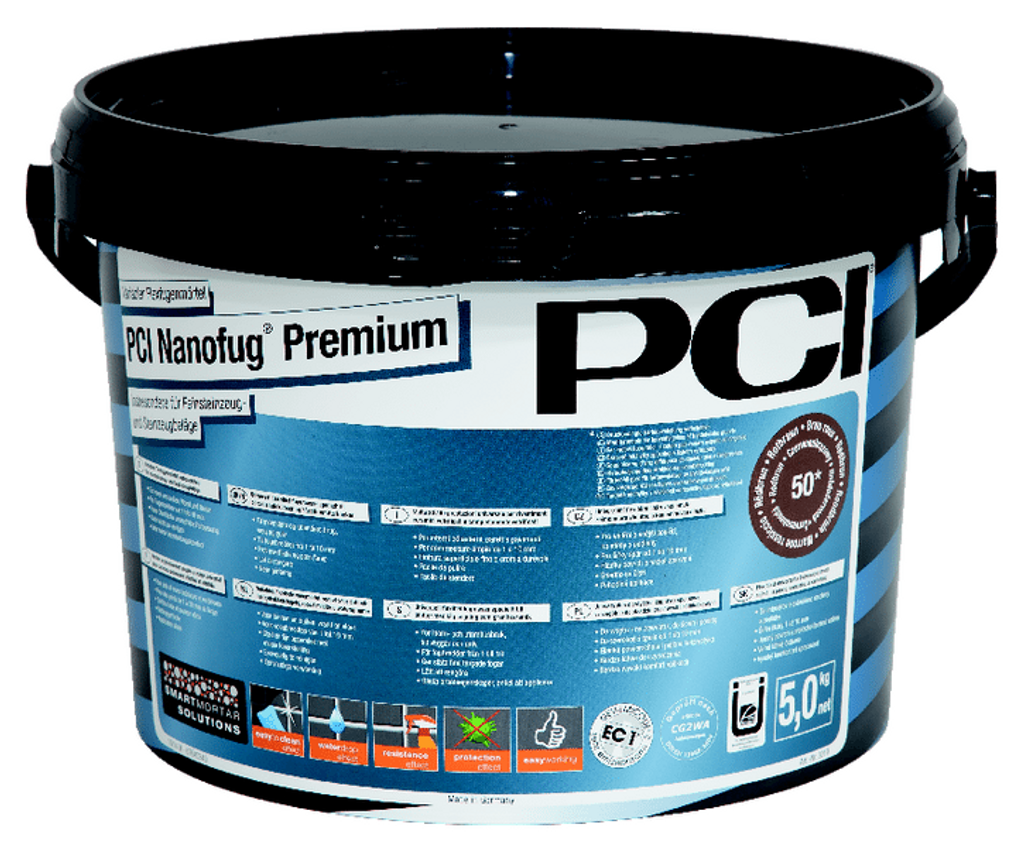 PCI Nanofug Premium är en högpresterande fogmassa, idealisk för granitkeramik, klinker, glas- och keramisk mosaik samt väggskiffer. Den har en porfri och slät ytstruktur, stabil kulör vid korrekt applicering och är lättarbetad med cirka 40 minuters brukstid. Snabbhärdande men fäster inte på plattorna och blir gångbar redan efter 2 timmar. Med “Easy to Clean”-effekt mot smuts och ökat skydd mot sura rengöringsmedel samt mögel och mikroorganismer. Låg emission enligt PLUS, GEV-EMICODE EC 1 PLUS R.
