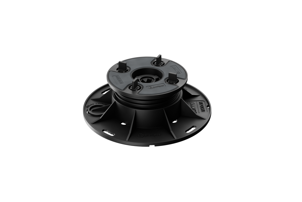 Själnivellerandepiedestal för klinkerdäck av 2CM Granitkeramik. Inbyggd justering 5% lutning. Går även att fixera i fast läge.