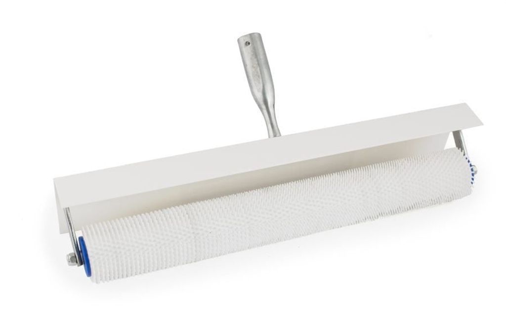 Av polyetenplast med plasthandtag. Används för att rolla bort luftbubblor i avjämningsmassa. Vid användning med flerkomponentsmaterial t.ex. epoxi skall rollern rengöras snarast efter användning. Passar träskaft konat till Ø 22 mm.