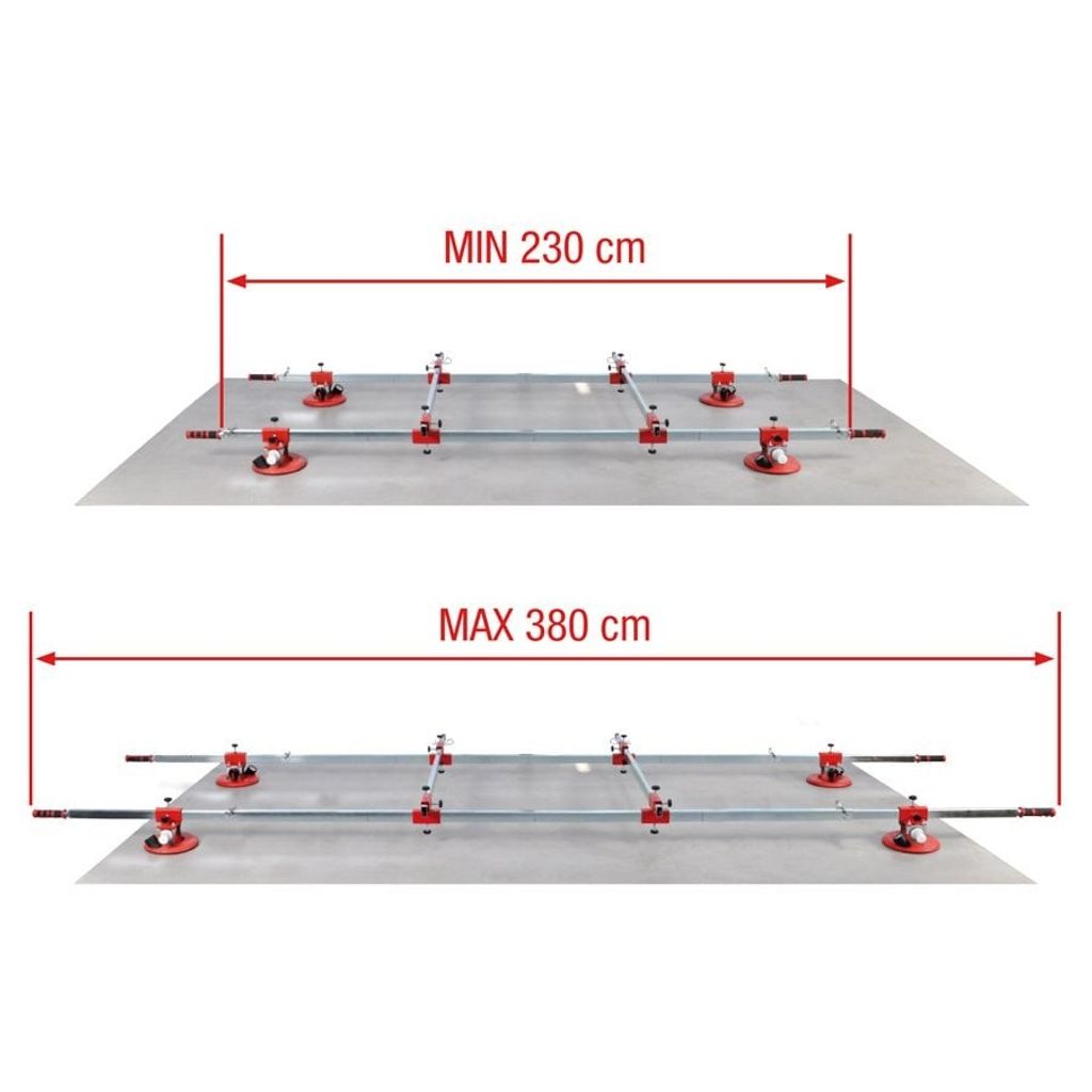 Plattlyft för storformatiga plattor. Justerbar längd: 2300-3800 mm.