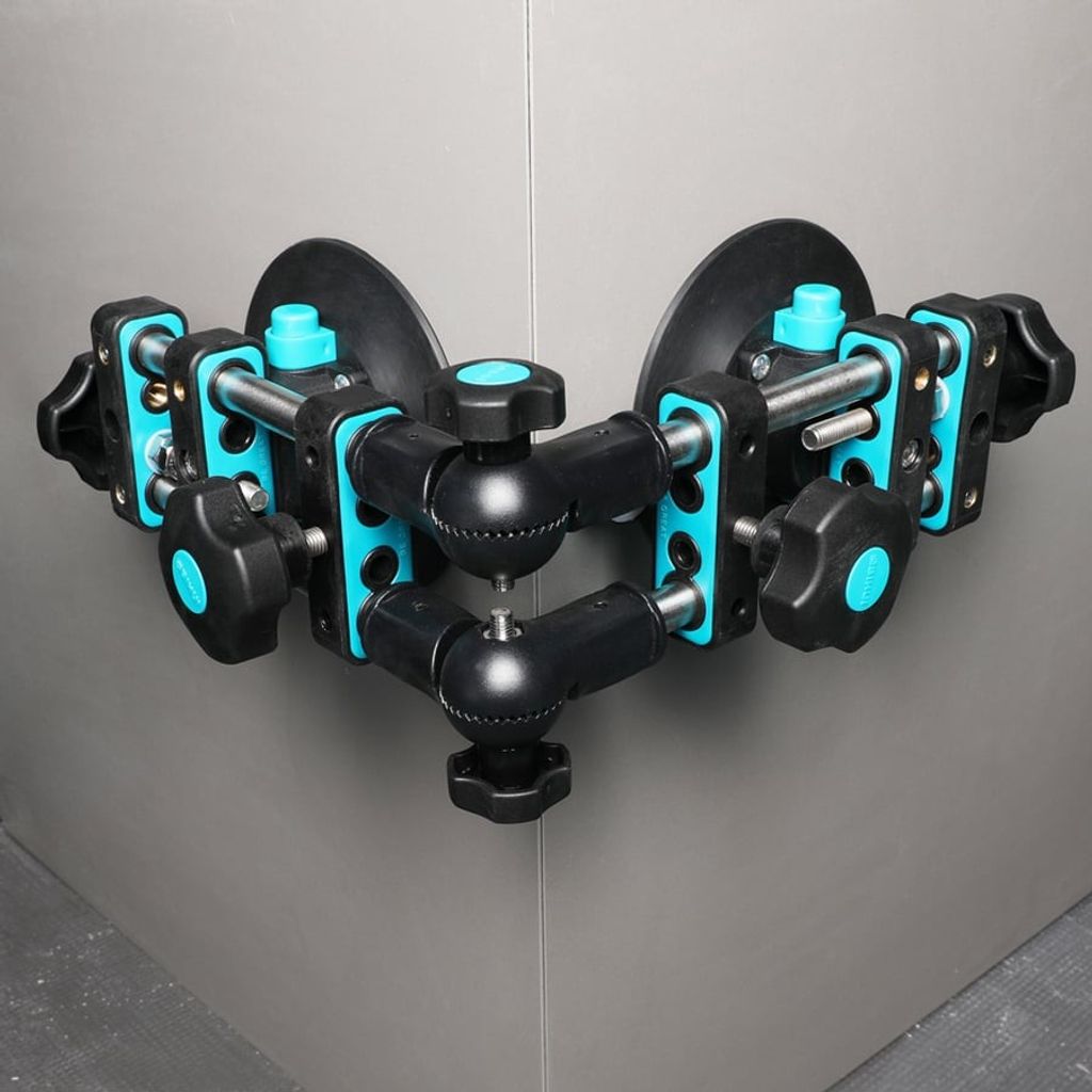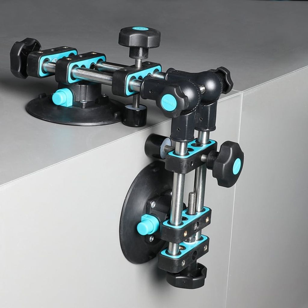 Sugkopparna fästs på plattorna och med hjälp av de olika vreden vrids de till och i önskad position.