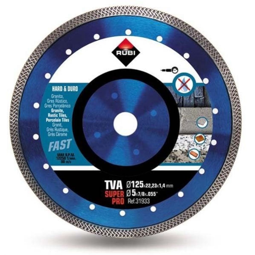 Rubi TVA Superpro 125x22,2mm Turbo är en professionell diamantklinga utvecklad för torrkapning av hårda material som granit, rustika plattor, klinker, skiffer, eldfasta material och porslin. Den unika TURBO-designen och diamanteggens utformning gör att du får snabbare skärhastighet samtidigt som finishen blir ren och exakt.