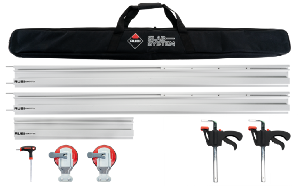 Tack vare detta kit i kombination med RUBI TC-125 G2-sänksågen blir kapningen ännu bättre och snabbare, även med plattor i storformat.