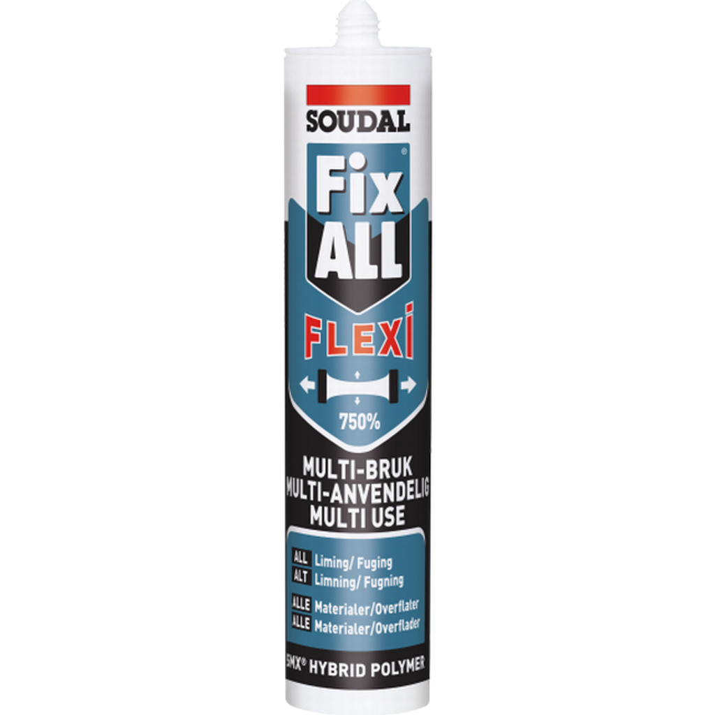 Soudal Fix ALL Flexi 290 ml är ett högpresterande multifoglim som kombinerar egenskaperna hos både fogmassa och lim i en enda produkt. Den är framtagen för professionellt bruk där mångsidighet, styrka och hållbarhet krävs – perfekt för både bygg, renovering och hushållsprojekt.