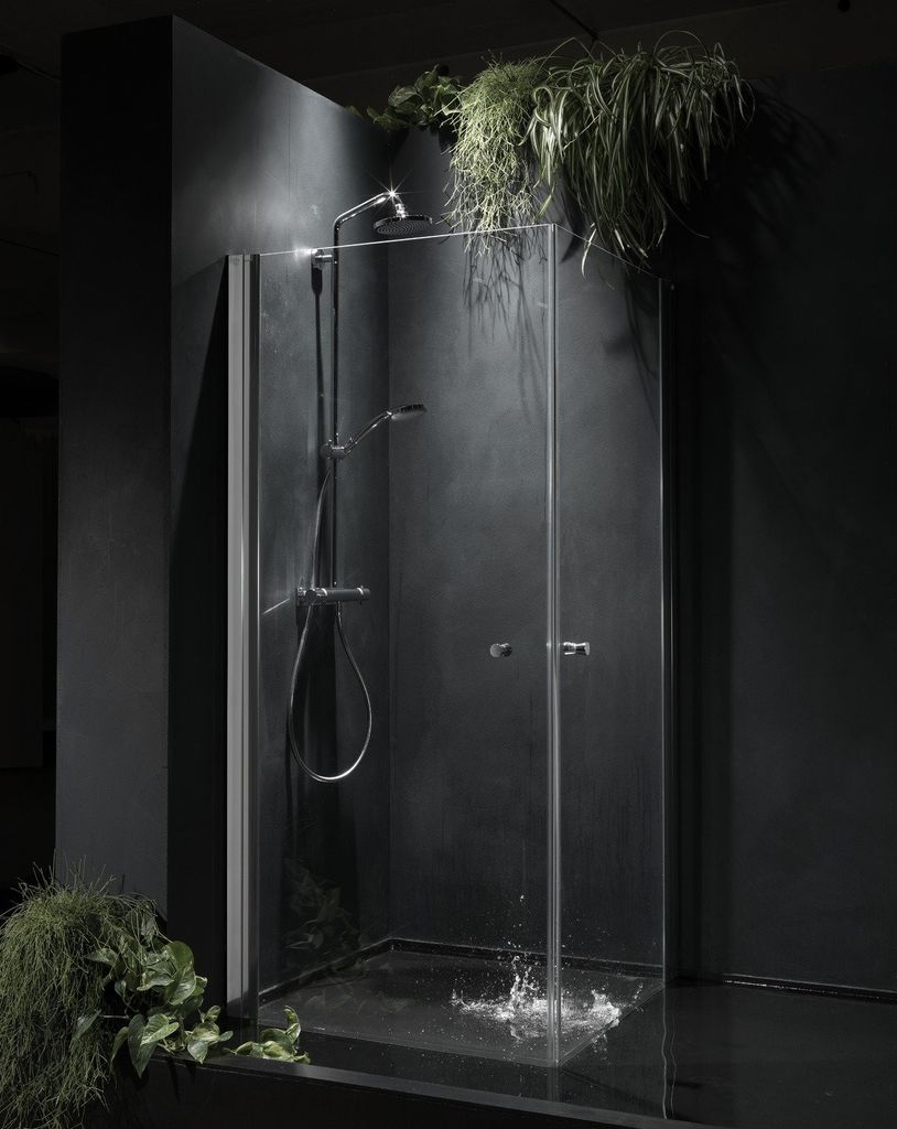 6 mm härdat glas samt ställbara gångjärn som lyfter 7 mm. Höjd 197 cm.