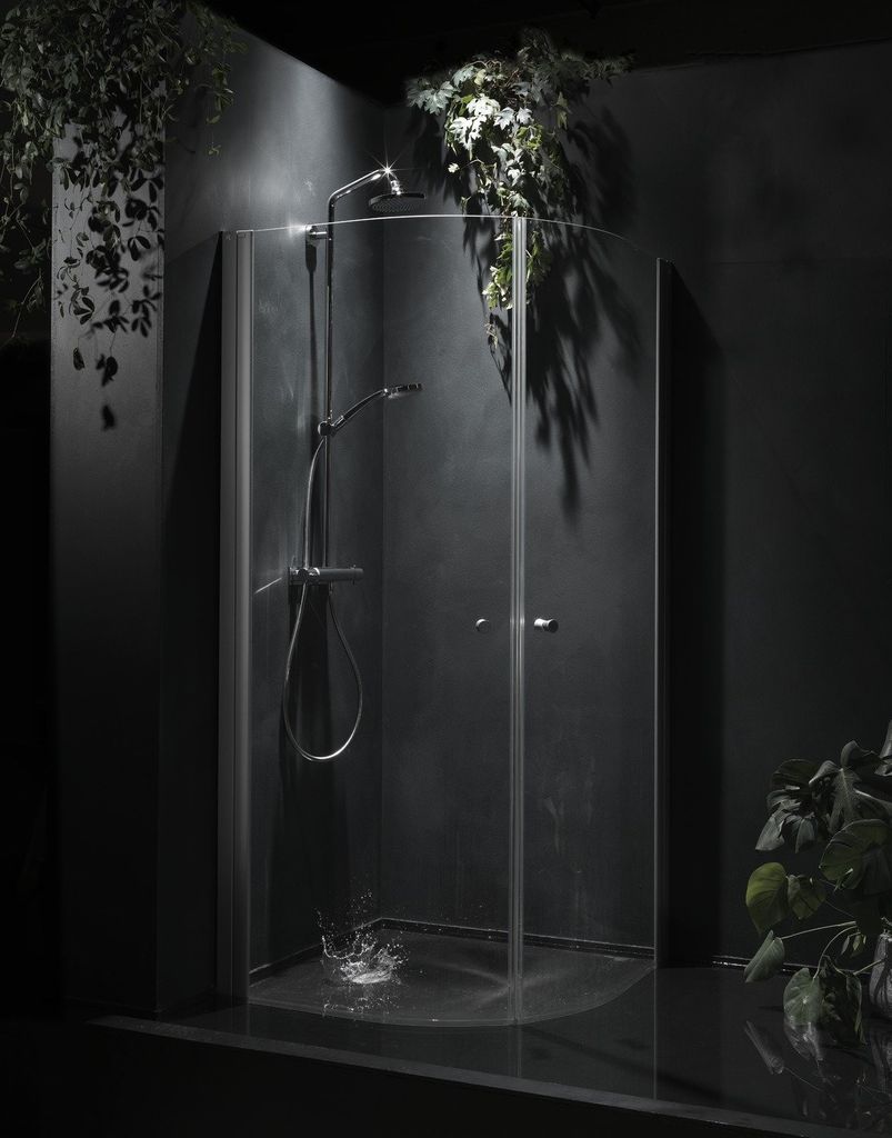 6 mm härdat glas samt ställbara gångjärn som lyfter 7 mm. Höjd 197cm.
