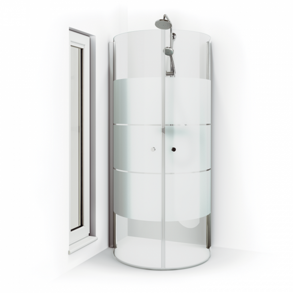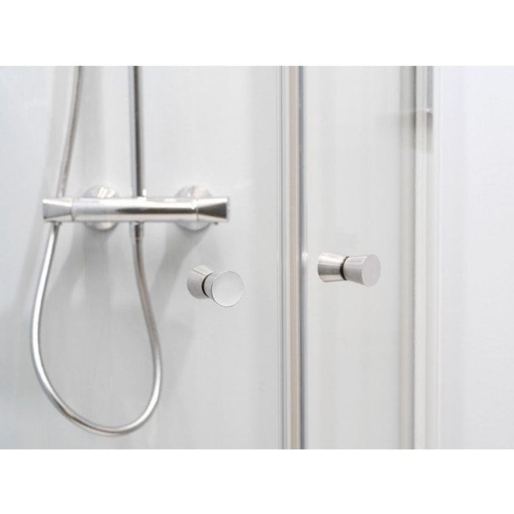 De ställbara gångjärnen lyfter dörrarna 7 mm och dörrar i 6 mm härdat glas med en släplist mot golvet.