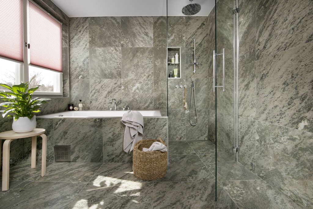 M Kolmården är en granitkeramik inspirerad av den klassiska svenska marmorn med samma namn som brutits i Östergötland i århundraden.