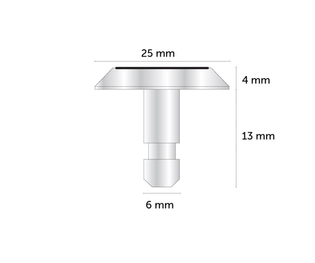 Avlång försänkt taktil ledstav. Tillverkad av syrafast rostfritt stål AISI316. Inlägg: svart anti-slip. Längd: 280 mm.