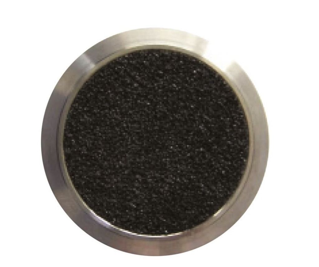 Rund försänkt taktil stoppmarkering. Tillverkad av syrafast rostfritt stål AISI316. Inlägg: svart anti-slip. Diameter: Ø 25 mm.