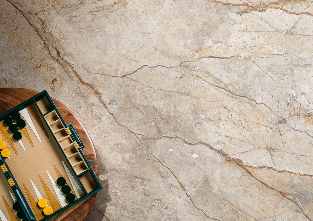 Imola Ceramicas utforskningsväg fortsätter med avseende på rikedomen i kvalitetsmarmor och deras tolkning.