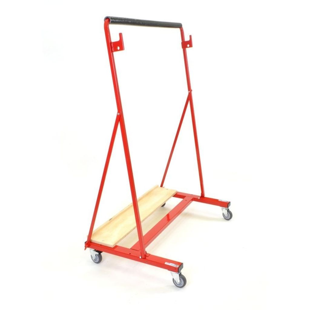 Utrustad med 4 st länkhjul med dubbelbroms. Två krokar i den övre delen av vagnen för att hänga upp plattlyft Superstick (ingår ej), vilket underlättar vid applicering av fix på plattan.