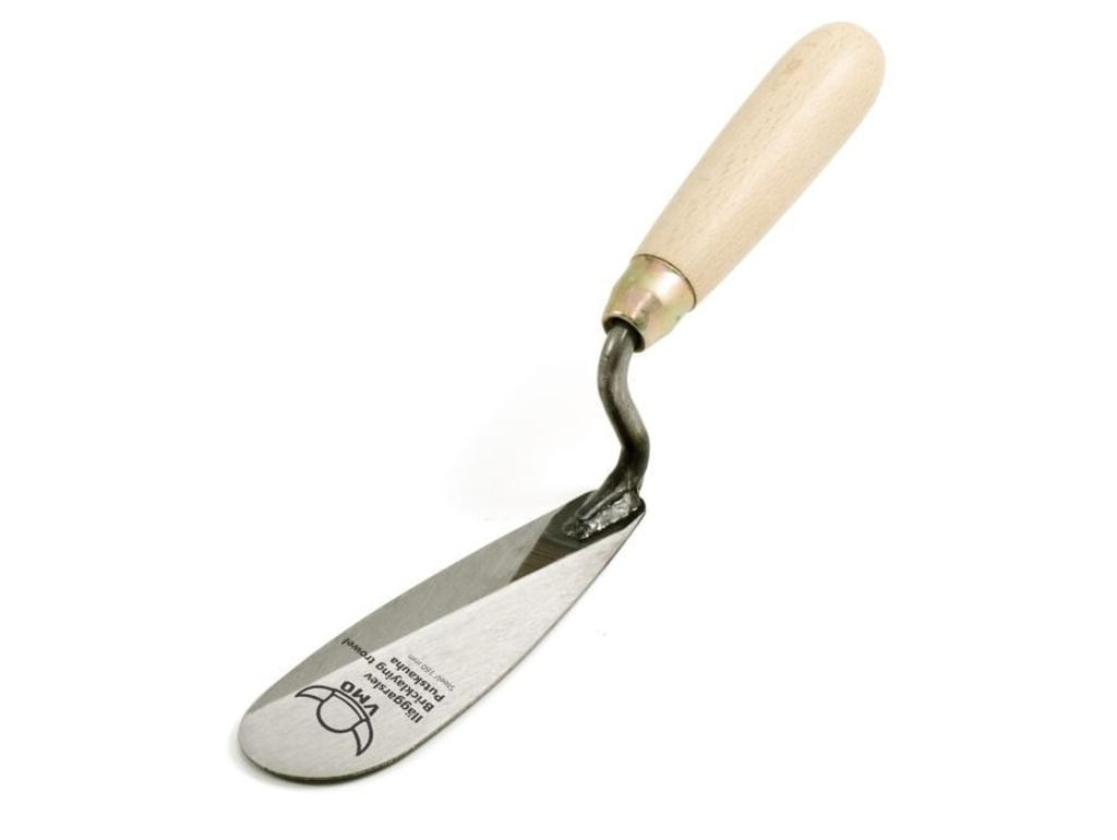 Det ergonomiska trähandtaget ger ett stabilt grepp och god känsla i handen under längre arbetspass. Ett pålitligt verktyg för professionella hantverkare och seriösa hemmafixare som arbetar med murning, puts eller plattsättning.